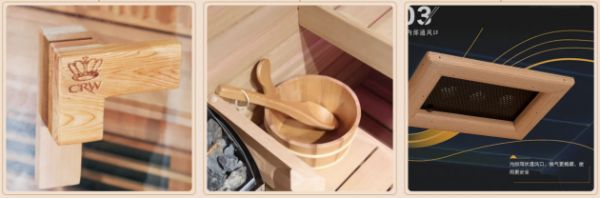 远红外线是一种对人体有益的光,又被誉为“生命之光”。英皇卫浴桑拿光波房采用的远红外波段与人体自身所释放的热能波段相似,舒适不闷热,排除的汗液为细胞共振运动所产生,不同于一般运动所出的汗液,无异味不黏腻。此外英皇卫浴温热空间经过缜密的排气设计,选用天然木材制造而成,环境中饱含负氧离子,仿佛置身于天然的阳光森林。