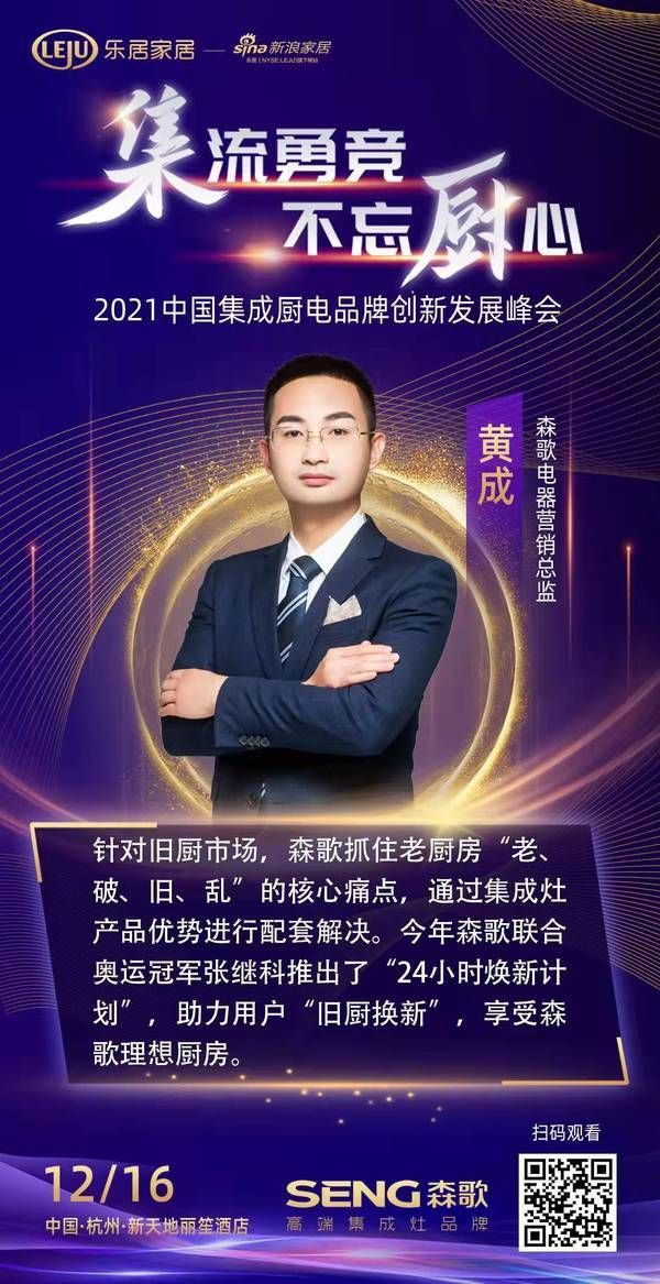 近日,在新浪家居2021中国集成厨电品牌创新发展峰会的论坛上,浙江森歌电器有限公司营销总监黄成为我们揭晓森歌高速增长的答案。