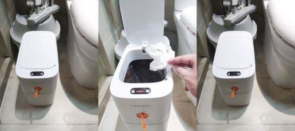 这个逸拉桶的功能应该是佳帮手的专利,我看店铺里好几款别的垃圾桶也是这样的打包方式。说实话非常好用很人性化,垃圾袋上沿儿有一圈抽绳,套垃圾袋的时候抽绳一端在卡槽处。打包的时候甚至桶盖都不需要打开,直接把抽绳一端一拉,里面的垃圾袋就自动封口了。完全不费力气不脏双手,也不用看到那些辣眼睛的东西。最近还在电梯里看到了他们的垃圾桶广告,虽然不是智能感应的这一款,但也具有打包不脏手的功能。
