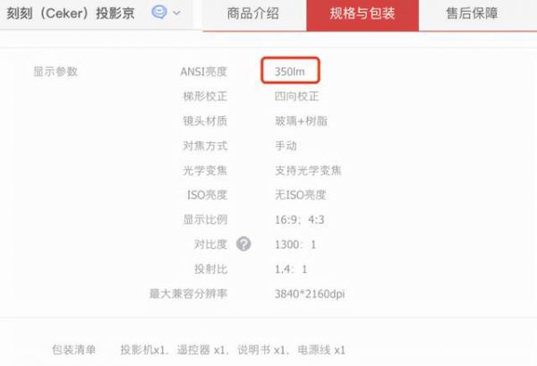 在参数表上,我们可以看到刻刻D3采用的是单片LCD技术,这个技术相较DLP技术成本较低,同时单片LCD液晶屏的透光性差,亮度低且光路不均匀,使得投影出来的画面容易出现中间亮四周黑的暗角现象,这个相较DLP技术投射出的画面稳定性不高,同时容易出现画面泛白的现象。