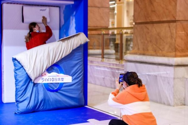 在体验式营销方面,梦百合不仅仅是做到用户单体的体验,更是把体验放到了快闪店上。都说快闪店是线下购物受到线上流量冲击、品牌重视程度提升拓展出来的突破口,梦百合今年10月的全球0压体验日,即把睡眠体验搬到了0压快闪店现场,“试睡15分钟领枕头”的活动吸引消费者驻足,现场配置的0压产品则是让消费者停留的保证。多种互动形式重新解释睡眠与用户的联系,给消费者形成新的认知刺激。活动现场,不少观众从被活动吸引,到躺上0压床试睡,到睡眠认知打入心智,仅仅需要一次0压产品的体验而已。