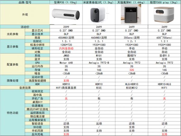 3000价位的热门投影仪:当贝D3X、极米NEW Z6X、坚果G9S、坚果P3S、米家青春版2代、天猫魔屏N1、联想T500play