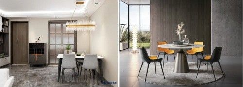 狭长、窄小的餐厅户型,适合长方形的餐桌,可以把部分角落空间合理利用起来,而对于一些长宽差不多的正方形餐厅,则圆形餐桌会比较合适,因为四边都一样宽,而长方形餐桌就比较碍事了。