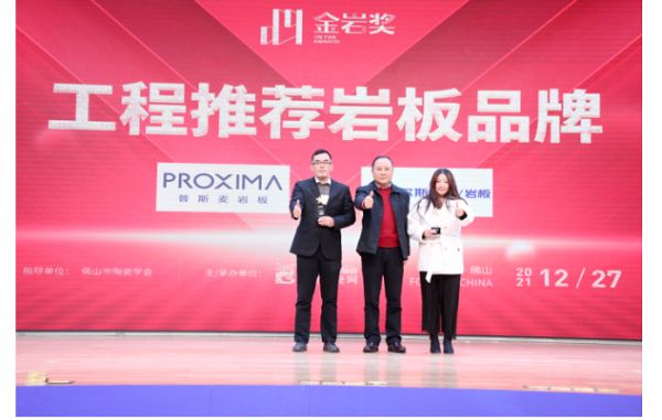 作为建材家居领域首个专注于岩板的专业奖项,“金岩奖”旨在寻找和表彰岩板标杆品牌,为岩板品牌和陶瓷行业发展赋能。组委会和评审专家小组从品牌影响力、技术创新、设计创新、应用创新、加工铺贴/安装、渠道建设6个维度进行进行筛选、考察和评价,PROXIMA普斯麦岩板在激烈的竞争中突破重围,最终斩获“工程推荐岩板品牌”这一殊荣。