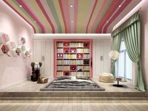 对于儿童身体成长和心理健康来说,都需要充足的睡眠,根据英国《每日邮报》刊登的一项涉及2000个家庭调查显示,卧室颜色对睡眠质量有很大影响,其中蓝色被认为是最有利于睡眠的颜色。为孩子们的房间选择亮丽明快的颜色,有利于孩子的智力发展和性格养成。
