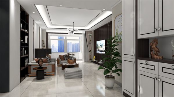 以上是一户3房2厅的客厅效果图,同一空间,同一装饰下,选择不同的瓷砖规格。