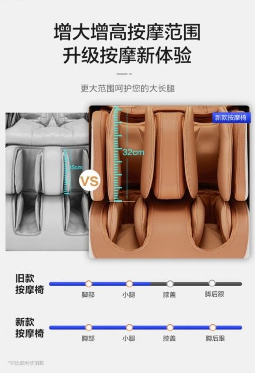 导轨能够覆盖的,基本都是机械手的服务范畴,按摩体验是不差的,但小腿大部分按摩椅都是单纯的气囊挤压了事。