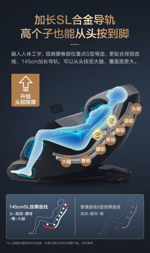 我找的这四款按摩椅使用的就都是SL导轨,其中欧利华OL8600最长,达到了145公分,可以从头部按到大腿。