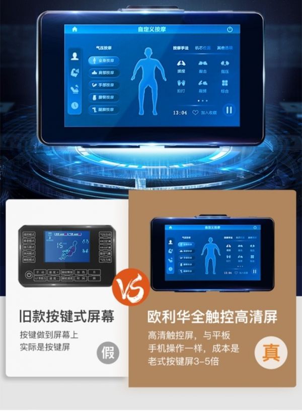 四款按摩椅当中,欧利华OL8600用到了微电流扫描检测技术,其他几款使用第二代的光耦定位检测技术。