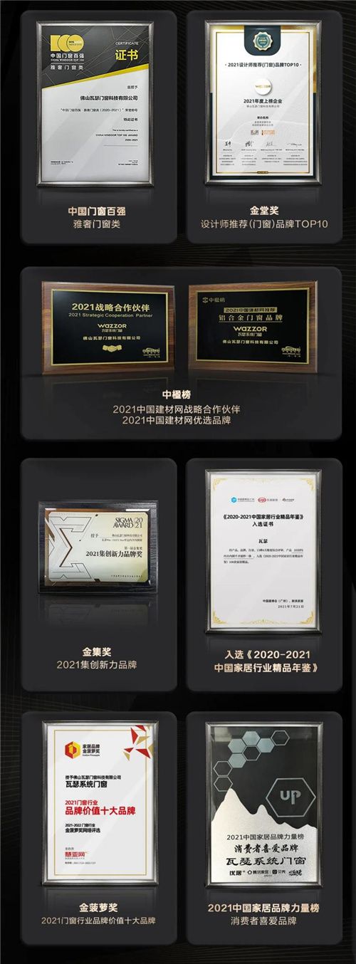 荣誉印证实力,实力铸就品质!仅一年时间,瓦瑟系统门窗先后获得多项荣誉,品牌实力和产品品质获业界认可。
