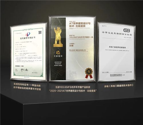 荣誉彰显高端门窗品牌实力,瓦瑟系统门窗在产品技术研发方面展现出卓越创造力同时为中国门窗行业的标准化建设和高质量发展持续贡献力量。