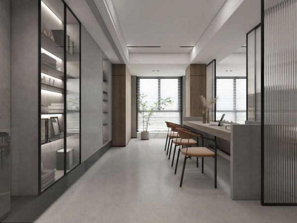 像莫兰迪色、大地色等这类饱和度和明度适中的颜色就特别适合大面积铺贴,整体效果会更加高级上档次,沉稳、静谧。