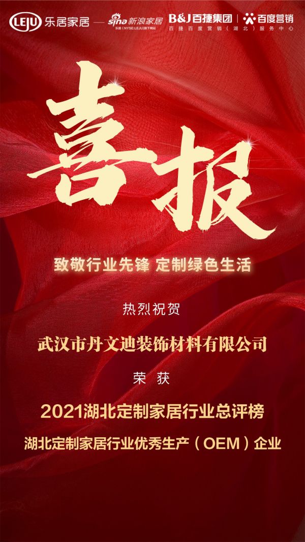 喜报|丹文迪装饰材料荣获2021湖北定制家居行业优秀生产(OEM)企业
