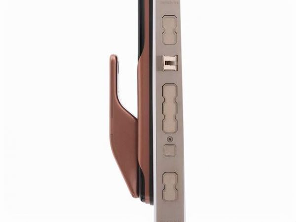 当初挑选智能锁款式的时候,一眼看上去,我还以为是座机电话呢。就这样,我选中了日上的这款纵向门把手的智能锁,发亮的棕色金属材质不仅看上去就很有质感,而且给人一种细腻的触摸感。黑色的密码界面被周围的棕色边框包围,整个智能锁采用流线型设计,柔和的外观下呈现出一种高贵的现代家居格调。