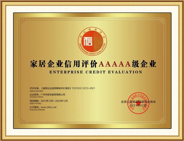 家居企业信用评价5A级企业