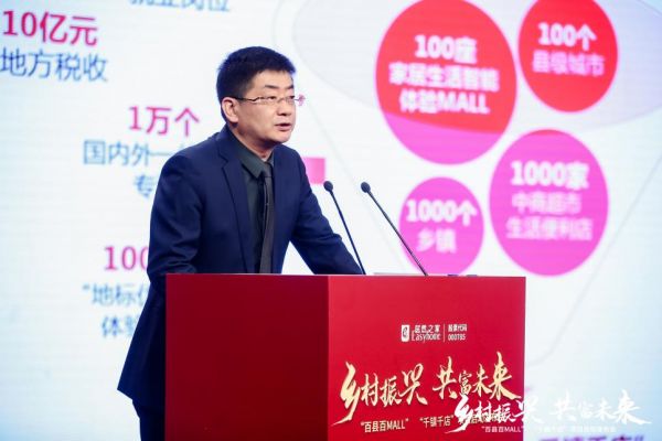 如今,罗田家居生活Mall作为居然之家“百县百MALL”“千镇千店”的成功典范,其落地直接解决了2000余个就业岗位,对于拉动当地经济发展、提升城市活力起到了巨大的推动作用。如今全面推进乡村振兴的关键就在于振兴县城,县域作为我国经济、社会、政治等功能完备的基础行政区划单位,是城乡之间的桥梁,更是城乡之间人口经济双向循环的重要的载体。因此建设现代化县域商业体系,发展县域经济是保证国家乡村振兴战略落地,畅通城乡经济循环,进而满足城乡人民对美好生活的向往,是推动全体人民共同富裕的最有效的途径和方法。王宁在解读“百县百MALL”“千镇千店”发展战略时指出,早在2017年10月,党的十九大报告中就提出了实施乡村振兴的战略,为继续实现新时代三农工作提供了思路上的指导和行动指南。2020年7月,国家十四五规划将发展县域经济、乡村振兴作为我们的发展战略规划。2021年6月,国家商务部等17个部门下发关于加强县域商业体系建设指导意见与支持政策,支持符合条件的县域经济快速发展。多重政策表明,建设县域商业体系是畅通国内大循环,全面推进乡村振兴和城乡融合发展,实现共同富裕的重要策略。