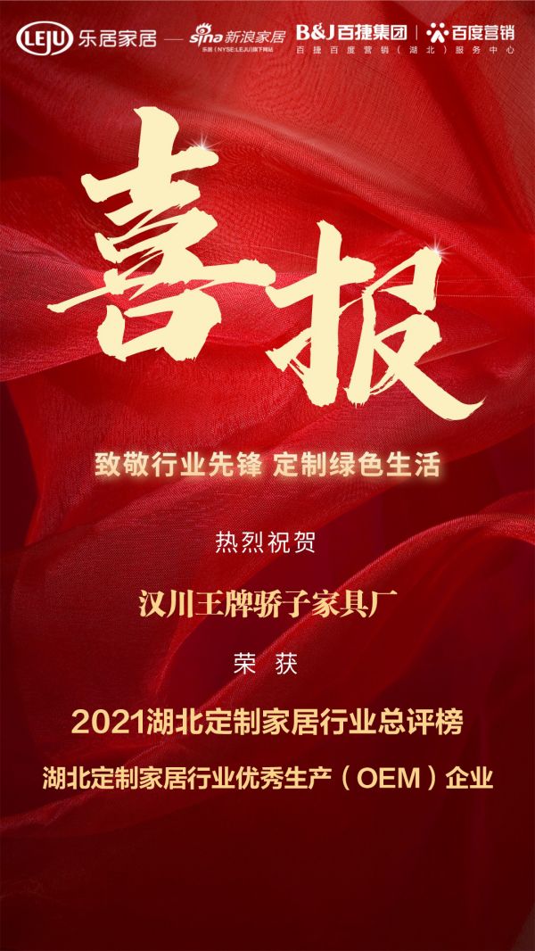 喜报|汉川王牌骄子家具厂荣获2021湖北定制家居行业优秀生产(OEM)企业