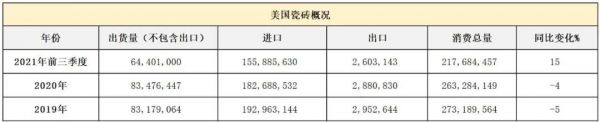 陶卫快讯|2021美国前三季度瓷砖消费量增长15.3%