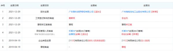 1月7日,广东雅科波罗橱柜有限公司转让河源雅科波罗科技有限公司100%股份予广州海鸥住宅工业股份有限公司。