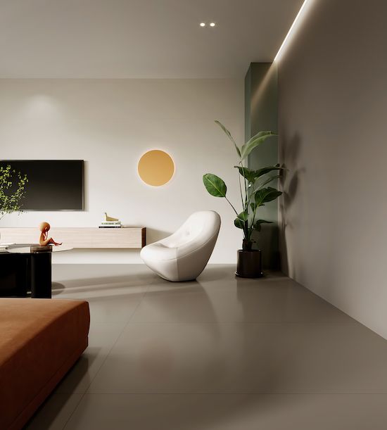 箭牌复合轻纹岩板摩登纯色的低饱和度的咖色凭借与生俱来的亲和感,给空间带来平和静谧的氛围。这样极具包容性的色彩,能够很好地将各种色彩的软装家具融合到空间中,没有突兀感,非常耐看舒适。