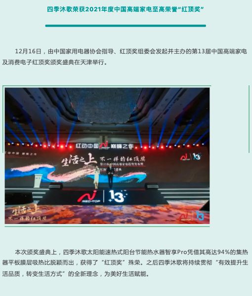 家电快讯|四季沐歌2021年度回顾:上市9周年、太·空双能新品亮相、迈向碳中和