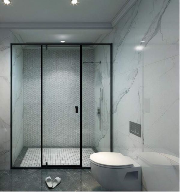 实体墙式淋浴房,一般装在墙角落,不阻碍视线也更加省空间,可根据个人喜好做成方形、圆形或者菱形。