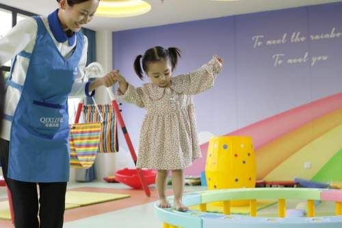 轻喜到家育婴早教师对小朋友进行感统训练