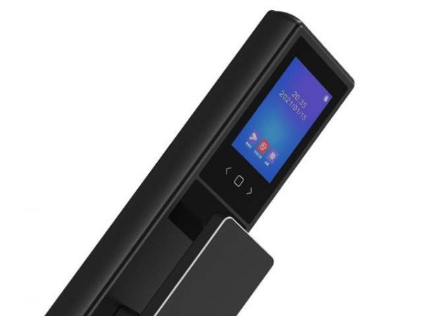 蓝色的指纹锁环位于锁面的中央,上面是数字锁面,最上方是高清猫眼摄像头,最下方的则是日上的logo,整个锁面由黑色和灰色构成,看上去给人一种简约之美。另外,这样的配色设计既时尚又百搭,无论家中是怎样的色彩装饰,这款智能锁都能恰当地融入。
