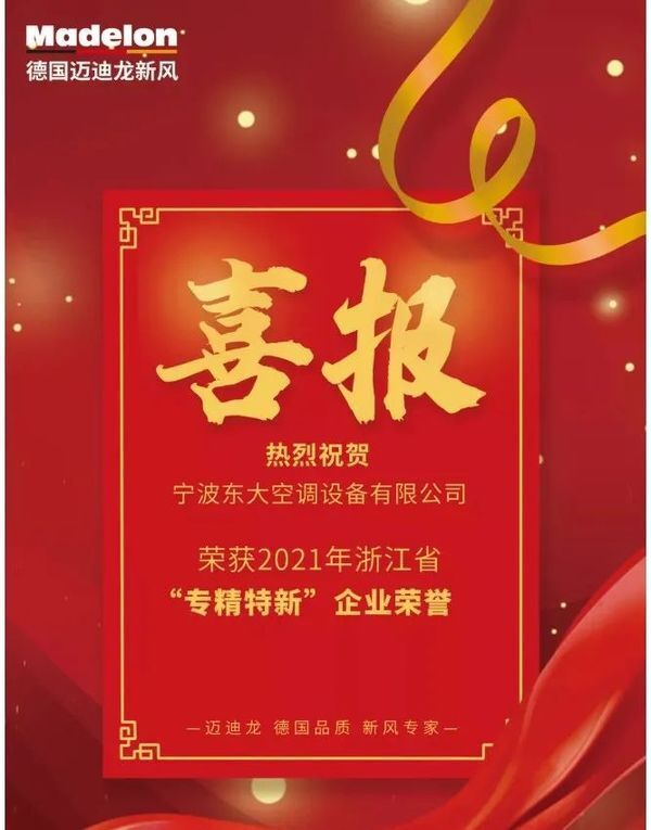 近日,浙江省经济和信息化厅公布了2021年度浙江省“专精特新”企业名单,2125家企业入选。其德国迈迪龙新风入选其中。迈迪龙一直以来以技术创新为立身之本,从一键家装排毒新风机到排毒健康、百变安装,一直在创新改变,是其更加适合市场需求,更加贴近消费者的生活。