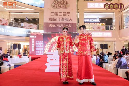 此次喜临门国潮婚嫁秀,在不同朝代婚恋观的主题背景下,邀请多位汉服模特一同演绎,实现传统中式婚礼与当代婚礼礼仪的有机融合,将中国传统婚嫁习俗文化直观的展现在成都市民面前。