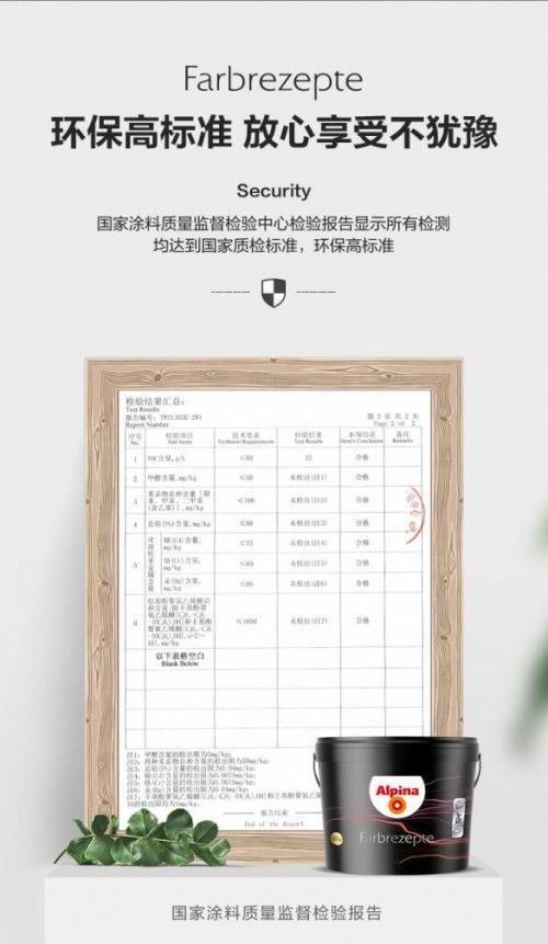 众所周知,墙面涂料的环保性能对于居住者的身体健康来说十分重要。阿尔贝娜之所以广受全球消费者的欢迎,一大原因就是它优越的环保性能。秉持着高品质的“护墙如护肤”理念,阿尔贝娜致力于为万千消费者提供绿色、环保的涂料产品,其产品先后获得了德国蓝天使认证,德国 FREI VON产品标识、法国室内空气环境A+认证等国际权威的环保认证及标识。其中,德国蓝天使认证是世界公认最为严格的环保产品认证,对涂料的甲醛和VOC(挥发性化合物)含量控制要求比国内标准严苛数十倍,阿尔贝娜VOC(挥发性化合物)含量最大不到1g/L,且经检测产品中不含游离甲醛,只为给消费者提供更加绿色健康的室内生活环境。