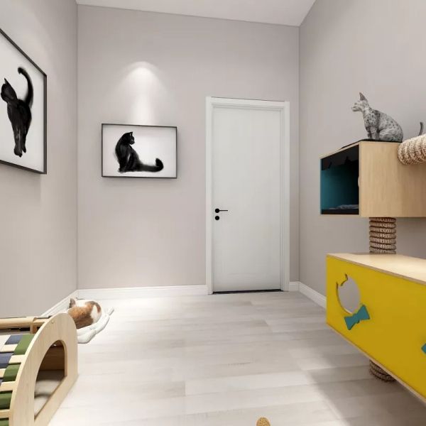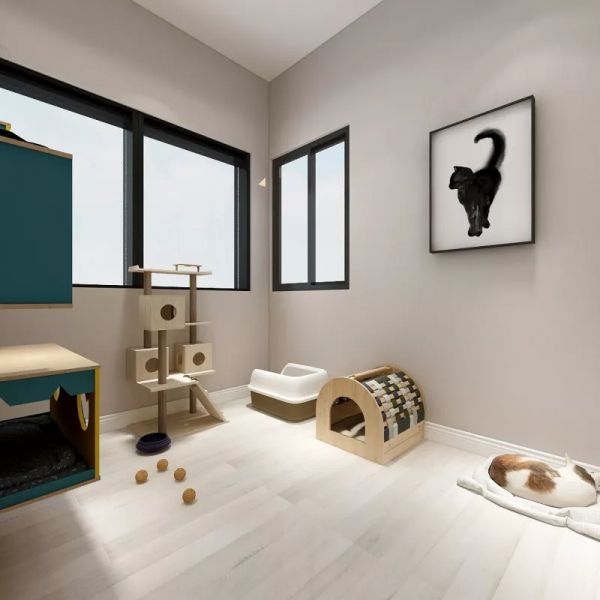 猫房结合了猫的一些习惯,设计了一些猫猫喜欢的架子和游戏场所,成为空间的一种美感。