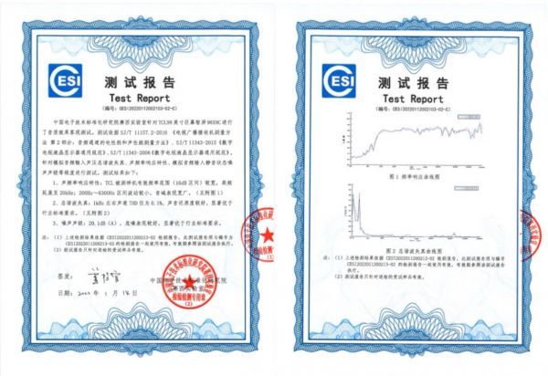 而除了在主观测试环节中拿下高分成绩,TCL 98英寸巨幕智屏 X 安桥音响同样在客观测试中凭借过硬的实力征服了专家评审团队。在客观测试中,电子标准院专家团队专门针对音质的频响、底噪、失真这三大重要指标来对TCL 98英寸巨幕智屏进行专项测试。最终结果显示:搭载了安桥音响的TCL巨幕智屏频率范围较宽、音域表现宽广,失真率和底噪均表现较好,显著优于行业标准要求。