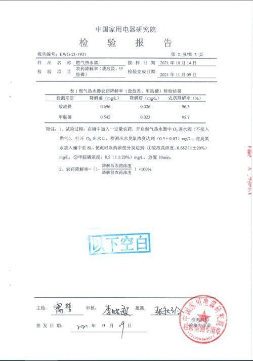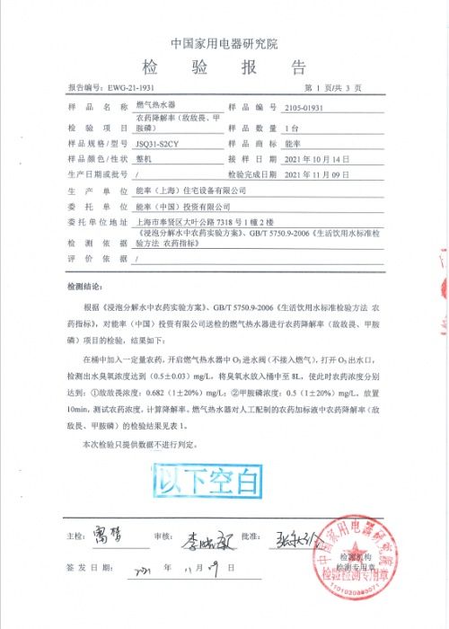 (中国家用电器研究院 检测检测报告号:EWG-21-1931)