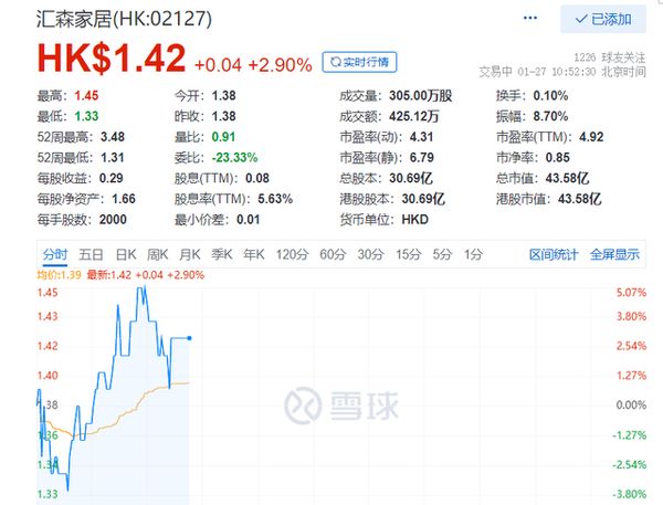 智能快讯|汇森家居股价涨近3%,与云想科技合作开发云端虚拟智能家居项目