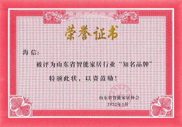 新浪家居智能家居频道讯 近日,山东省智能家居行业2022年会暨协会一届二次理事会在济南泉城大酒店顺利召开,行业专家及数十位企业代表共同参会。会议表决通过了《山东省智能家居协会理事及以上单位增补的提案报告》,并举行山东省消费者协会消费维权工作站授牌仪式,确定山东省智能家居协会建立省级消费维权工作站。会议同步对行业优秀企业进行推介表彰,海信智慧生活被授予山东省智能家居行业“优秀企业”以及“知名品牌”荣誉称号。