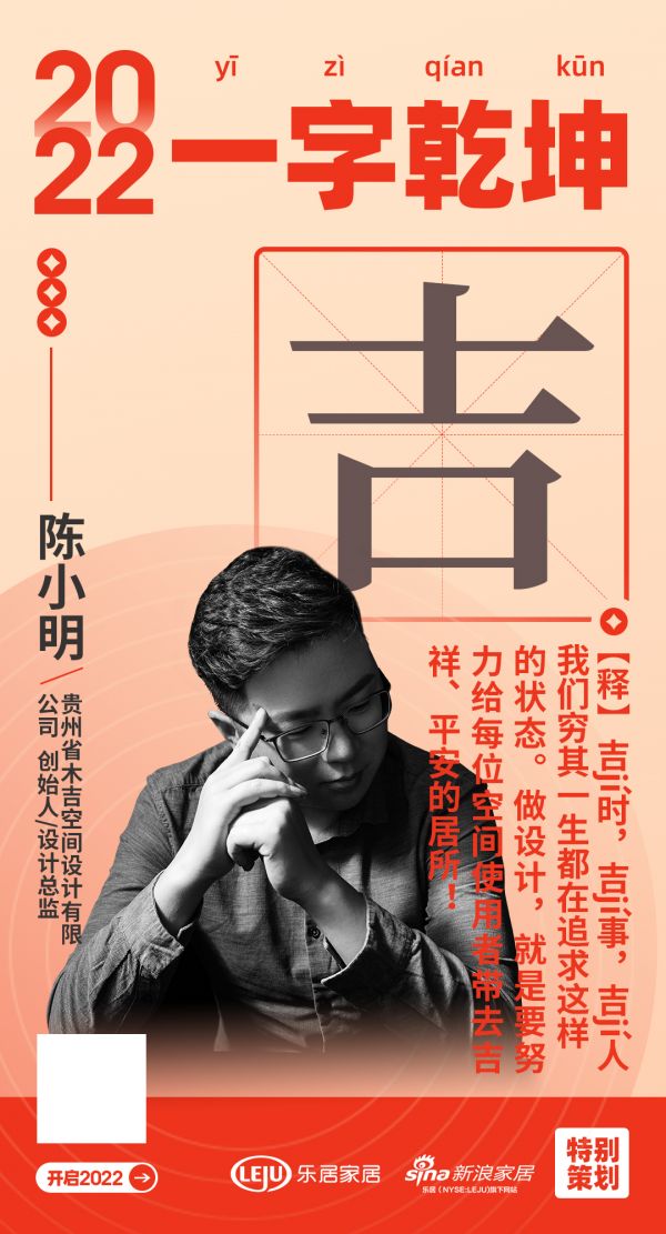 在“2022一字乾坤”活动中,贵州省木吉空间设计有限公司创始人/设计总监 陈小明用「吉」表达了2022年的规划和目标: