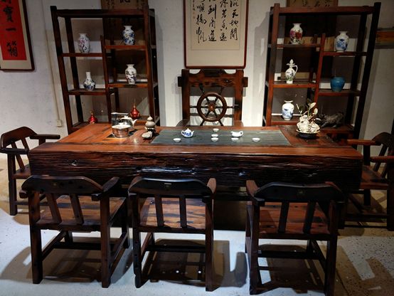 在百年古船,老船木们被合理利用,经过韩超一块块的精挑细选,结合船木的环纹和形状来设计,打造出的家具充满了古色古香又豪华的魅力,适合各种场景,来此购买的顾客有些是买回家使用,有些则是自己开店使用,不管用在哪里,很多顾客都表示自己购买的老船木家具被亲朋好友或是其他到店的顾客看到后都会被它的美所吸引,称赞其工艺和品质,然后自己也咨询购买的地方,就这样百年古船的口碑一传十十传百,积累了无数回头客的同时,还有很多外国友人也趋之若鹜的前来购买,对于体验这种充满中式气息的船木家具,感到兴奋和惊喜。