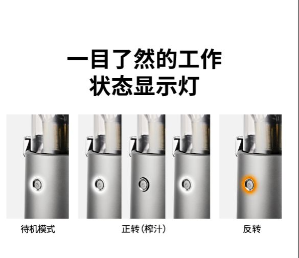 还有更多深受女性们喜欢的便利功能:5分钟自动感应电机计时器功能:机器感应到大口径投料口里果蔬的食材压力,即进行反复自动反方向榨汁,并在开启5分钟后自动停止,不卡机、无需人工调整;亮灯功能让榨汁状态一目了然:蓝色为榨汁模式,橙色为反转模式,不亮为待机模式,运转中打开投料口,机器即自动停止,避免产生伤害。
