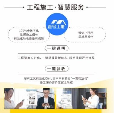 施工管理上-自主搭建全新壹号工地工程管理系统,一键轻松在线监控施工进度,导航式指引标准化验收,施工全流程在线溯源,强化了客户在自己新家的话事权,保障了施工质量。