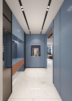 如果家是心灵的归属,那么卧室就是我们的归宿。灰玻收纳柜合理利用主卧玄关空间,拒绝沉闷让空间显得更加通透。蓝白撞色护墙板搭配暖光灯设计,让你尽享舒睡氛围,一身轻松进入梦乡,做一个幽蓝的甜蜜的美梦。