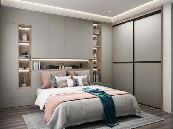 轻快的背景墙搭配整体收纳柜的简约线条,再加上灰色系地板,海尔全屋家居营造了空间整体的简约氛围,轻松就能感受到空间的美好与生活的饱满之处。