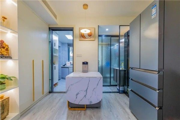 我跟业主沟通下来了解到,业主比较喜欢简约带一点质感的黑白灰色调,从量房、功能性的沟通、再到整体方案出来,方案效果图还原程度也蛮高的。最后能得到业主认可我也挺开心的。