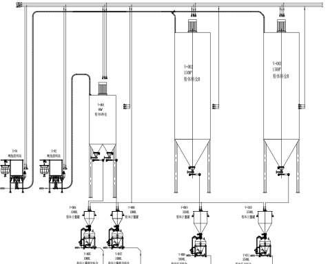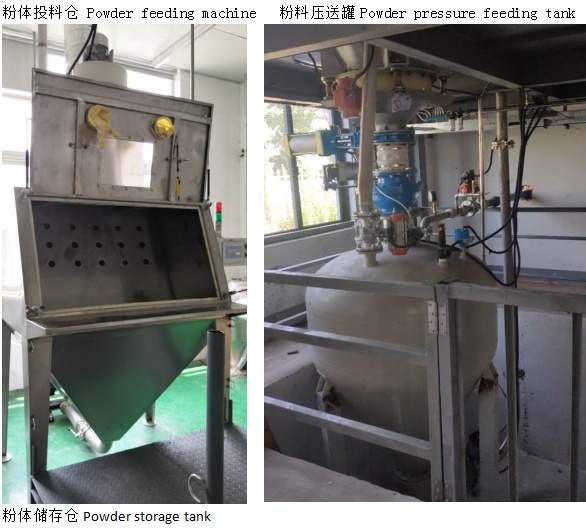 粉体自动上料系统完成粉体自动上料、储存(粉体料仓配有液位测量)、自动称重计量、自动输送至生产设备。