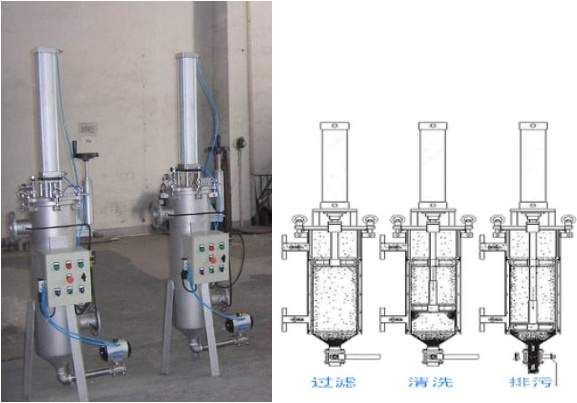 自动将颗粒杂质排出滤元,无需人工清洗,可单机连续在线过滤,自动运行,流量稳定,节约人工和过滤耗材。