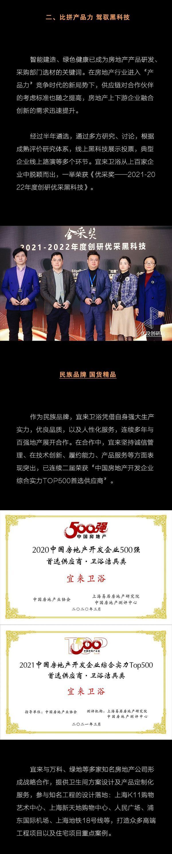 喜讯 | 宜来卫浴荣获“中国房地产开发企业500强首选品牌