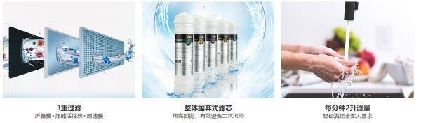 净水工艺采用纯物理过滤,不插电不排废水,滤芯寿命达12-18个月,使用更方便!