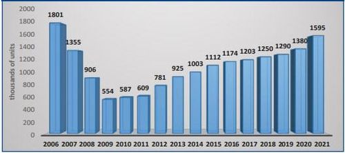 住宅市场尽管存在供应链和劳动力问题,但新房开工量连续第12年上升,达到了2006年以来的最高点。2021年,近160万套住宅开工,比上年增长15.6%。