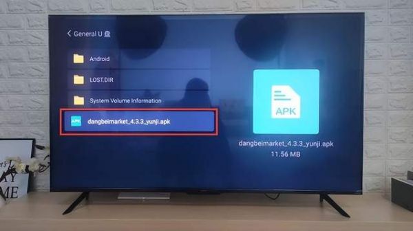 U盘插入电视后,找到下载好的安装包,将当贝市场安装至电视。