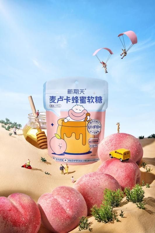 新期天麦卢卡蜂蜜软糖有两种口味,蜂蜜白桃味和蜂蜜柚子味。蕴含了高端原料——麦卢卡蜂蜜UMF10+,进口蜂蜜夹心,一口Q弹爆汁,唇齿留香。